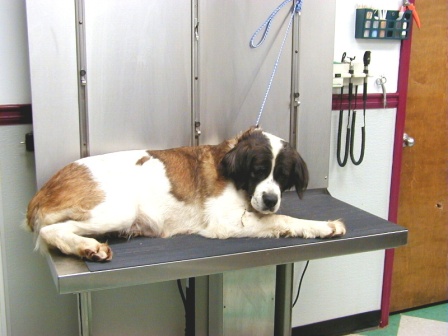 Tom: is a 6 yo neutered male rough coat. He was adopted from us 3 years ago. His family relocated and he was happy with the new accommodations. Very laid back dog. From Tom; I have finally made it into the bedroom to sleep. I have Dr. Sara and Steve both convinced they are my favorite people. Life is good. I would however prefer to live in a house with less than 12 dogs and 5 cats. The one cat JJ has a mean combination of swats. I’ve heard something about him having retired from the barn. I understand he’s the Saint Bernard cat trainer here. He told me today that I’m the best dog he ever trained. In other words I do not mess with him. 2/2/2009