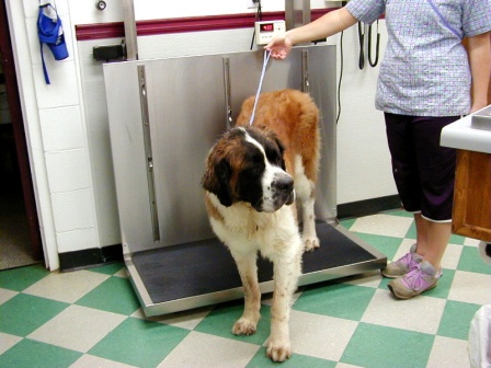 Mozart: is a very healthy 165 lb. male. He is very tall. His head actually is taller than my kitchen counter. So needless to say, you would have to watch out for the food. He is very good natured. Gets along with anyone, and all animals. His owners went through a divorce, so they could not keep him. He needs to find a home who will give him the attention and love that he deserves. 3/11/2009