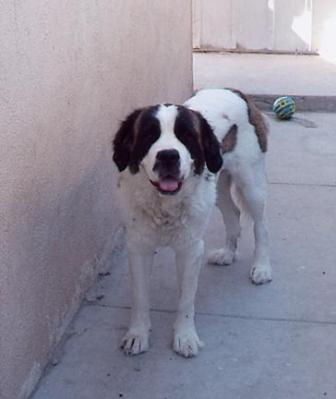 Zeus: Friendly, big happy 3 yr. old male St. Bernard who was rescued from the St. George, Utah shelter. Zeus is a handsome guy, as you can see! He gets along with other dogs. He is powerful and will need some leash training but if you love St. Bernards, this boy may just be for you! 9/27/2009