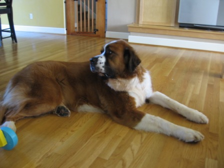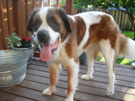 Zeus: is a 6 year old neutered male Saint Bernard. He is a beautiful dog with a great temperament- very friendly, and still a great watch dog. He likes to be walked, and is great on a leash ( but has a little trouble listening sometimes when he sees a squirrel or a cat)! Zeus weighs about 140 lbs., and is current on his vaccines. Zeus is a rough coat Saint, and he plays well with others at the dog park and at doggie day care. 12/27/2009