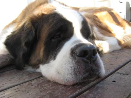 TEDDY: Teddy’s a lovable goofball who came into Rescue as yet another victim of this tough economy. He’s vaccinated, microchipped, housetrained, neutered, and HW-negative. Teddy’s a strong boy. For that reason the successful candidate must have Saint experience and will be willing to help Teddy work on his leash manners. He’s not a fan of “loud” so a peaceful environment will make him the happiest. He prefers sleeping on the master bed (and he’s quite the bed hog). He likes squeaky toys and Sno-Cones. Give this boy a Milk-Bone and he’ll be your new best friend. Teddy’s ideal family will have kids over age 12, a secure fenced yard, and a Saint-experienced family. He will do best in a home where he’ll be the only pet as he’s convinced that all the attention in the world should be showered on him alone. 12/13/2009