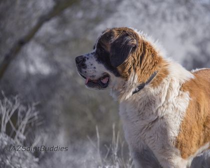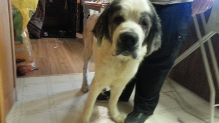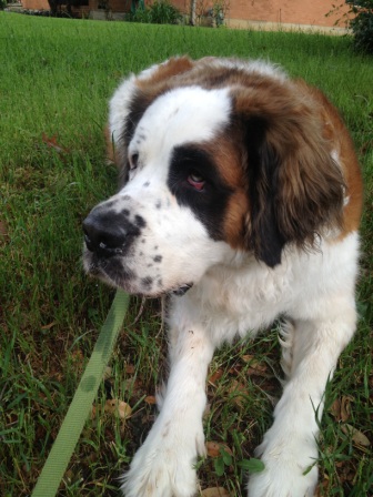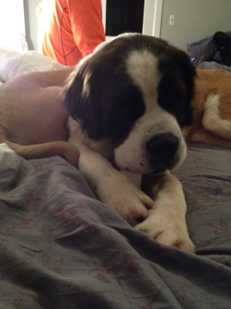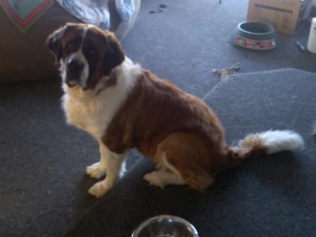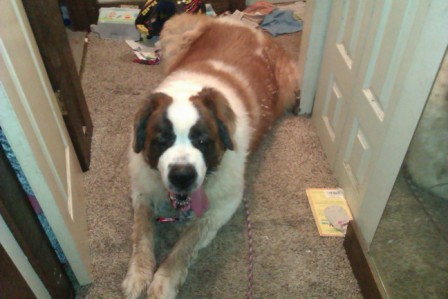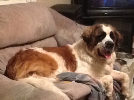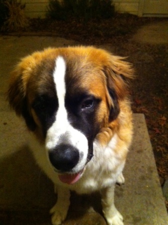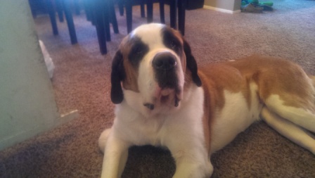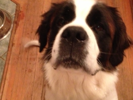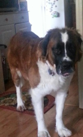 Haus: is approximately 22 months a puppy by Saint Standards. He is a big boy and is a talker. He has growing to do and loves his regular groceries a few times a day. Loves car rides and really wants a buddy. He needs someone who can give him the leadership to be the best dog on the block. Good with kids we prefer older kids as he like to play rough. A very nice Boy and we want him to have a super home. 12/17/2013