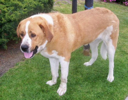 Bailey: has been starved for attention and love but is quite willing to make up for lost time. He is one big cuddle bug. He is 2 yr old, housebroken, neutered, chipped, wormed, and all vaccines are current. He gets along with dogs, cats, and kids. Is a bit on the thin side but is eating well and happy to have a feed schedule he can count on. He is 30" at the shoulder and is 150# and gaining. He is a big happy doofus of a moose and would be happy anywhere he can have a soft bed good food and lots of attention. He is a fast learner and quickly adapts to new schedules. Walks well on a leash and loves short walks. Is looking for a forever family to become a treasured member of. 4/27/2013