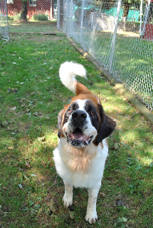 Bernard: is a 9 year old Saint that came to Mid-Atlantic from the shelter that his owners took him to because they no longer had the time for him. He is very well behaved and is good with children of all ages and other animals. Bernard is great on his leash, knows basic commands (come, sit, lay, and paw), is fully house broken, does fine at home alone without being crated and loves car rides. You will need a large car for those rides because he weighs in at close to 180 pounds. Bernard is heartworm negative, is up to date on all shots, has been de-wormed and is in great health. All he needs is a forever home that will be as devoted to him as he will be to you. 12/17/2013