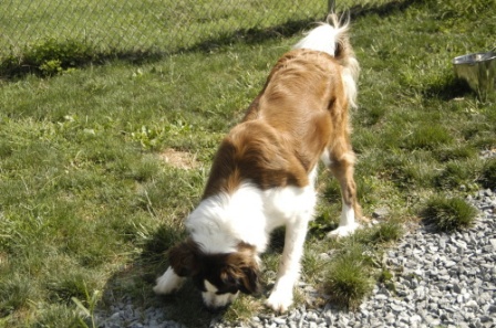 Dexter: is a 2 yo M/n rough coat. This picture is of him 1 yr ago. Dex was adopted in March of 2012. His adoptive Dad had knee surgery a month later. Dex did his best to help. Dexter is back w/ us. He gained more than a few pounds. In fact Dex is a tad chunky. He’s still a fun loving pup. He’s on the Rescata weight loss plan. 2/10/2013