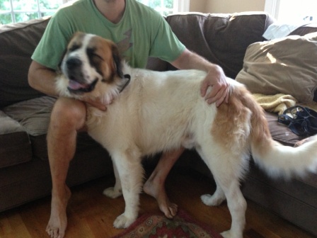 BRUMMY: is a beautiful 5 year old male Saint. He is slightly on the smaller side, about 85 pounds; you could consider him as an apartment size or starter size Saint. He does require a diet of food with no grains in it. He also takes ear medications. Brummy is such a sweet boy. 1/15/2013