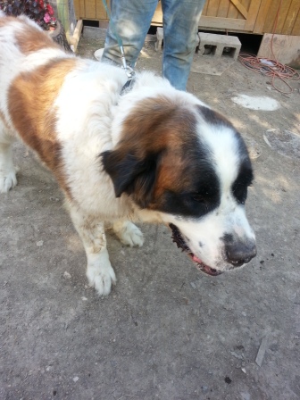 Sergio: is a handsome 2, 1/2 year old, male, rough coat Saint Bernard. He is neutered, micro-chipped, heart worm negative and up to date on his shots. Sergio is a big friendly guy with a great temperament. Before going to his foster home he was left outside on a chain and did not get much attention. He lived with two other dogs, and gets along well with people and dogs alike. We don’t know about cats. He is learning to walk well on a leash, and some basic commands. Sergio needs a loving forever home where he can receive some training, and grow into the great dog that he obviously has the potential to become. It is not recommended that Sergio go to a home with small children because of his large size. SERGIO NEEDS A HOME WITH EXPERIENCED GIANT BREED PEOPLE. He is a good boy, but very active and needs training. 2/17/2013