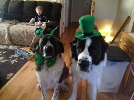 Charlie: is a female one and a half year old Saint Bernard. She has been a part of our family since she was eight weeks old. She knows basic commands such as sit, stay, come, wait, and is great on a leash. She had no problems as a puppy being housebroken, although when she gets overly excited (like a friend or family member she likes stops by), she has peed on the floor out of excitement. Charlie has grown up with our son who was a toddler when she joined our family. She has always been very good with him, patient and loving. She is incredibly affectionate and enjoys being in the middle of whatever our family has going on. The only concern we have regarding Charlie is that she needs a bit more socialization. She has always had unlimited access to our fenced in backyard, so she got plenty of exercise without the socialization that frequent walking would’ve provided. As a result, she is sometimes nervous around new people/places and exhibits this by urinating, "tracking"/following people very closely, or barking. We just welcomed another child into our family this week, so we are looking for a special person or family to welcome Charlie into their lives. 2/3/2013