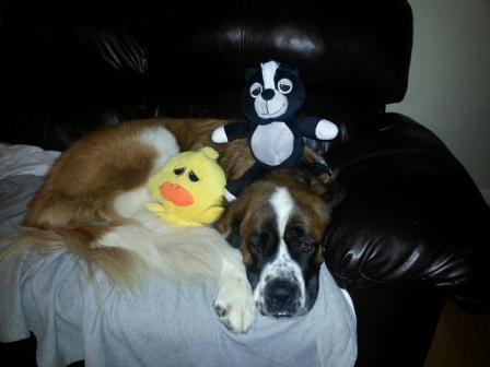 Toby: is a year old fully vetted purebred Saint Bernard. Toby wants nothing more then to be your friend. Toby loves the outdoors, loves long walks, dog parks, and car rides. Toby is crate trained, housebroken, and knows basic commands. Toby is great with other dogs (large or small) and loves kids. Toby spent his whole life in a backyard, with little human interaction, so he’s on a mission to make up for lost time. Toby is still very puppyish, so he will need an active family, and would make a GREAT second dog! 3/3/2013