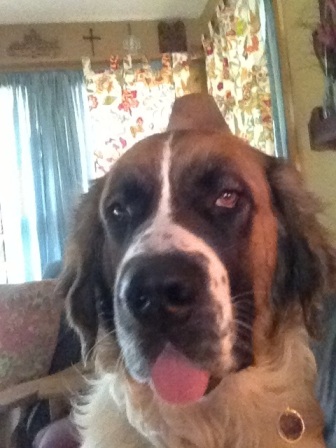 Dopey: is 10 and a half years old. St. Bernard Male, Due to family medical issues beyond his control, Dopey is in search of a new home. His family is tore up over it, and is not taking this lightly, they want to find him a VERY good home! As a puppy he did go through a training course, and will sit for dog treats 😉 He LOVES Beggin Strips and giving big ol’ sloppy St. Bernard kisses. Has never been able to make friends with the cat, but I don’t think he was mean to it. Has done fine with kids, but in his old age is getting some arthritis in his legs and is stiff of a morning, so some days he might be a little grumpy, just from pain. But he’s never had issues before. He’s one big loveable lug! 11/25/2013