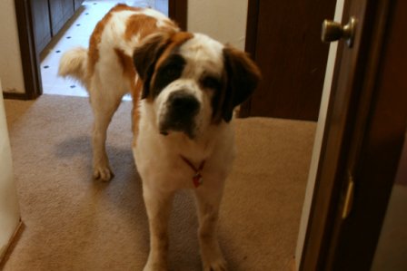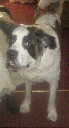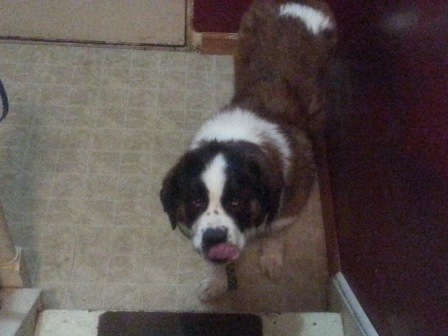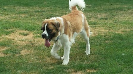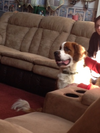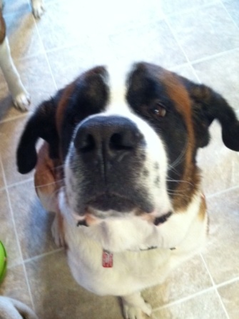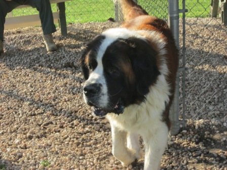 Scout: He is very large a two year old Saint who is coming into our rescue due to an illness in his family. Scout is very friendly and playful, he likes his squeaky toys and the family cat (in a playful way). Scout does need a little work on leash manners but he does know the basic commands. So if you would like a new big buddy he is waiting on your call. 12/20/2014