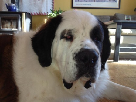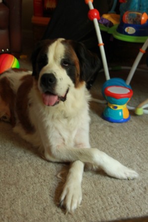 Yogi: Hi my name is Yogi I am a 7 yr old St Bernard and this is my story. I was living with a family who had to move and no one will accept a dog as big as I am into an apartment, so my owners are heart broken that I need to find another home. So like I said I am 7 yrs old and neutered, UTD on my shots but my rabies is coming up, I am housetrained, not destructive at all. Another thing please don’t let my age full you I still have spunk I’ve grown up with 3 kids and keep up with them. 10/25/2014