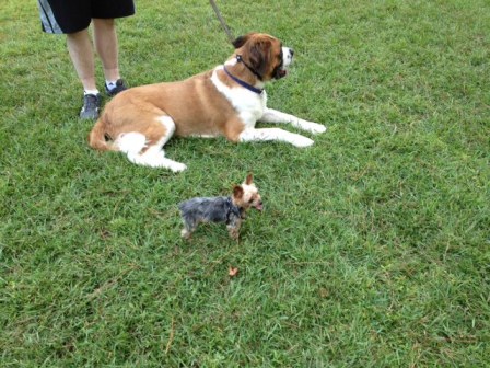 Poppi: is a 3 month old Saint mix (Momma was a purebred Saint, but not sure about Daddy). She is cute as can be, and has lots of energy. Poppi will be spayed next week, and will have had 2 sets of vaccines by then. She currently lives with multiple large dogs and multiple cats, and is in the process of being housebroken. We anticipate that Poppi will grow up to be much smaller than your average Saint, but there is nothing wrong with pint sized, and she probably won’t have the drool factor either! 10/11/2014