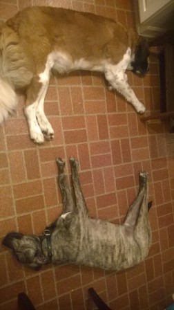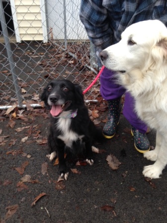 MIKE: IS ON THE LEFT – Mike is really special and deserves to be spoiled. He was in an outdoor pen that had mud piled up against it so high that the door was not opened for months. Food and water were thrown into him over the top. He was in deplorable condition. He was taken from his owners by the SPCA for his area. If I remember correctly, some firemen came to lift him out through the top of that pen. And for all that, he is still sweet. And for never being socialized, he was absolutely wonderful with Jackson for a 3hr car ride. He needs some training, notably on leash, but he’s naturally wonderful. 4/13/2014