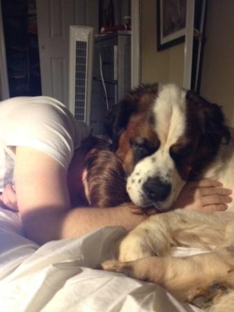 Bay: Hello this is Bay (short for Beethoven) I am a 6 y o St. Bernard, he is okay with other dogs and even cats although may chase the cats if they run. He also likes people. Bay is looking for a new best friend or a family that would like to hang out go for walks or just lay around. 9/15/2014