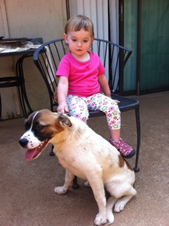 Snickers: and Nala: are lively, full of energy, playful two year olds! Snickers and Nala run in the yard all day. They love each other and they are great with kids. These gals are Saint Bernard/German Sheppard Dog mix. Both need further obedience training from an active family wanting a fun loving chick or two! They have had basic training and are very bright. Either of these gals would be terrific in a home with lots of children and/or access and perhaps the funds to take them to a doggie daycare to burn off that German Sheppard energy; which, btw, won’t last past their puppyhood. The laidback/lazy St. Bernard in them will take over soon enough. These gals can be adopted separately but would be good in a home with another large dog as a new sibling to run and play with during the day. Nala and Snickers aren’t good with small dogs or cats. They are just to big and active. But these two do love kids! 2/3/2014