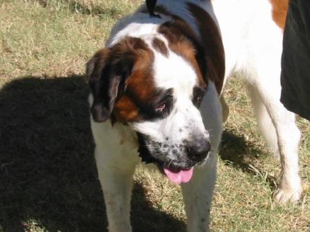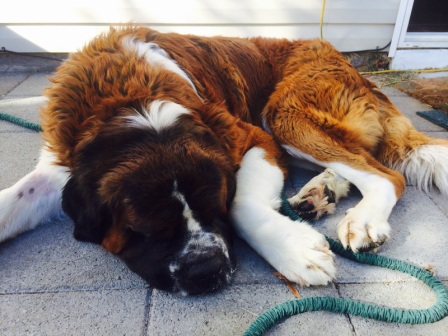Hercules: came to our rescue when his previous home did not want him anymore. He is 3 to 4 years old and probably the laziest Saint we have ever run into. He walks slow he eats slow and he lays around all day long. If you are looking for a dog that will never be a problem than he is your man. 10/28/2015