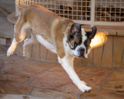 Stella: is an 18 month old female Saint. She is cute, funny and has lots of energy. She is spayed and up to date on her shots, Heartworm neg. and is micro chipped. She was turned in by her previous owner due to lack of time. She was well loved with no restrictions or training. Stella needs an alpha home and with some guidance, she’ll make a wonderful pet. 8/30/2015