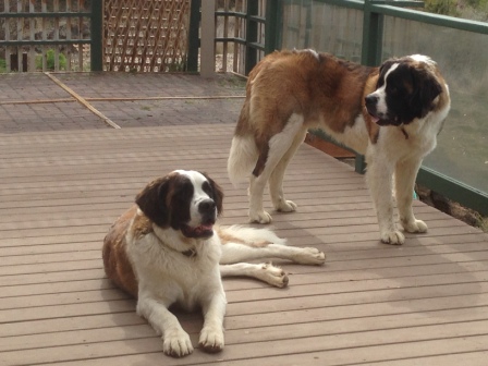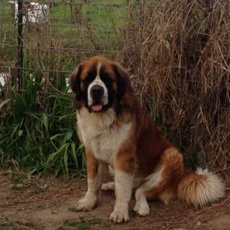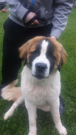 Bernie: is a 4 year old 140 lbs smooth coated Saint. Bernie is a very a happy go lucky kind of guy. He loves everyone likes to go on walks and meeting new friends (people and dogs) but does need some work on leash manners. So if you are looking for a bundle of joy who will always be happy to see you this is your guy. 10/28/2015