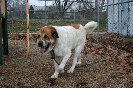 Charlie: This is Charlie he is a 9 to 10 month Saint who is weighing in at 91 lbs of pure fun, his only concern is who is going to play with him or who’s lap does he get to sit in. He has an injured front foot that we are working on get healed up. So if you want a lot of fun in your life Charlie is your guy. 4/23/2015