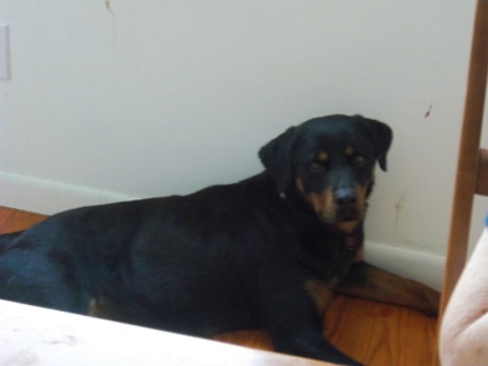 Roxy: Roxy is a 2 to 3 year old petite (68 lbs) female Rottie, She loves to be curl up and just be near her person. She walks well on leash and gets along with everyone including dogs, cats and kids. 5/3/2015