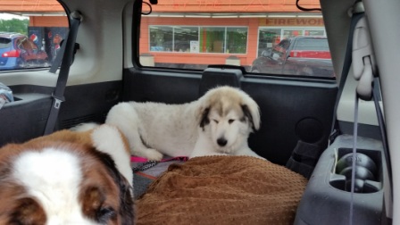Maddie: This is Maddie she is 11-12 month great Pyrenees. Super sweet loving girl she’s great with other dogs and even with cats as a typical puppy life is all about fun sleeping and then more fun. If you are looking for a new best buddy she would fit right in. 1/28/2015