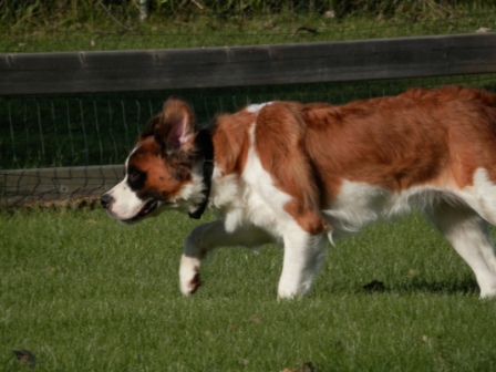 Iris: is a gorgeous one year old with very unique facial markings. She loves, loves, people of all ages, water, tennis balls, playing and going for walks. Iris loves to run through the water and play with other dogs, and she can run fast. If you are looking for a Saint that would be good in agility, Iris is it. 6/25/2015