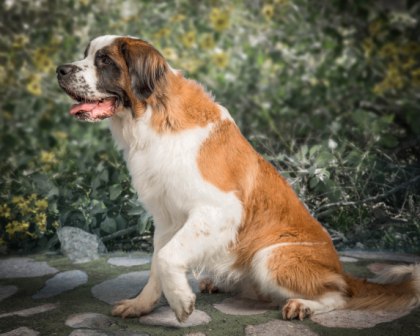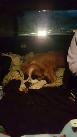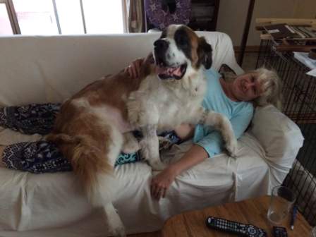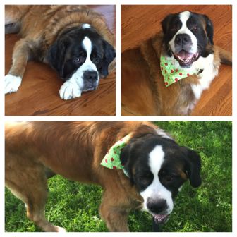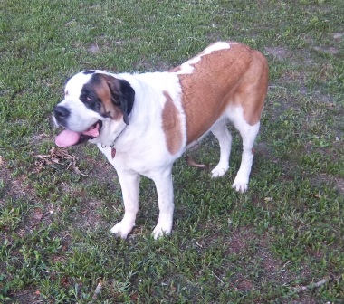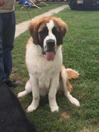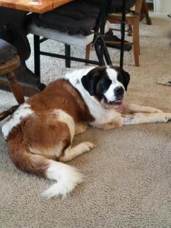 Seamus: He is a 6 yr. long hair male Saint. Very friendly, loves people, and gives a paw. He is friendly with other dogs, BUT NO CATS!! is prone to Ear infections, so ear cleaning is a must. We are told he likes water.5/25/2016