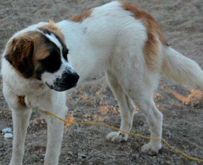 Little Boy: is 8 month old Saint/Great Pyrenees mix male that was released to us by his owner along with his sister Sara. He is a sweet pup that is very playful, loves meeting people, good with kids and other dogs, plus he is potty trained and rides great in the car. Little Boy is neutered, vaccinated, micro-chipped, but still being a puppy he will require obedience training.12/17/2016