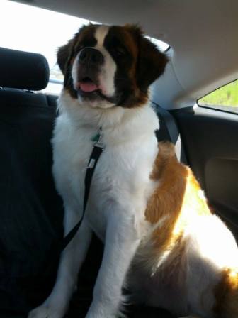 Teddy: is a happy, friendly 1.5 year old male St. Bernard who was adopted in March but is back in Rescue because he really needs a home with another dog(s). He has a high energy level which was not a good fit with the family cat. Teddy does enjoys car rides and running like the wind! He would love an active lifestyle. If you are interested in adopting (or fostering) Teddy, 8/17/2016
