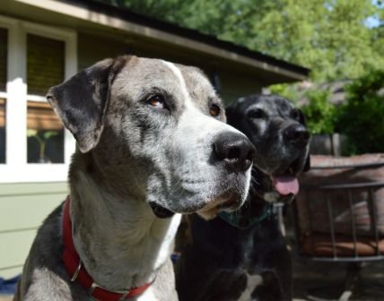 Hodi: and Stella: are a bonded pair that came to rescue after their owner could no longer care for them. They are about 6 years old. Hodi is a big handsome, outgoing l/h male who will soon be neutered. Stella is a cute, more reserved l/h spayed female who has had one litter and could put on some weight. The dogs have been around kids of all ages, but they will do better with kids 12yrs and up just because of their size. Hodi has a big bark, especially when people come to the door but he is a big baby. Hodi had a run in with his previous owner’s intact male bulldog, so he may be selectively friendly with other dogs. Currently, the dogs are getting their medical needs attended to and getting to know their foster family.