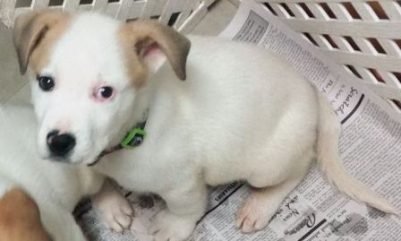 Mickey: came from the Tucson shelter and was listed as a Great Pyrenees mix. We aren’t positive what Mickey is but we do know he is a love. He was on the e-list due to his owners wanting him put down because of his eye. He was attacked by another dog when he was a puppy and now he is blind in the one eye. Mickey is still considered a young guy at 15 months old and being blind in the one eye doesn’t cause him any trouble. He loves people of all ages and gets along great with other dogs. He recently attended an adoption event and he was a big hit with everyone, giving loves and greeting all the other dogs.3/17/2016