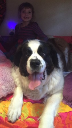 Benedict: is a tall, very big 135lb 5 yr old, long hair neutered male Saint Bernard. He is the sweetest, most affectionate boy ever! Benedict lost his family when they moved and couldn’t take him with them and has been patiently waiting for a new person or family to adopt him. He has a great sense of humor and really loves people. He bonds quickly and wants to be next to his person all the time. He loves to rest his head in your lap and rest at your feet while you are working in your office. Benedict was raised with children around, so he understands little people. He gets along well with female dogs and would love to go to a home with a large breed female that will play with him but he will also be happy as an only dog. He has not been exposed to cats. He has been around chickens and doesn’t seem interested in them. Benedict loves car rides and tennis balls. He is UTD on shots, heartworm negative and micro chipped. Can you give Benedict the home and love he deserves? Benedict is currently being fostered in Newberg, OR. 12/27/2016