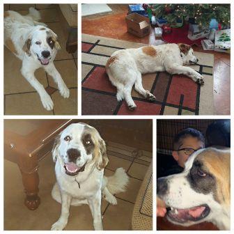 Sara: is 8 month old Saint/Great Pyrenees mix female that we rescued from his owner along with her brother Little Boy. She is a sweet pup that is very playful, loves meeting people, good with kids and other dogs, plus she is potty trained and rides great in the car. Sara is spayed, vaccinated, micro-chipped, but still being a puppy she will require obedience training. 12/17/2016