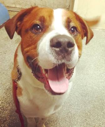 Bruno-2: he is a Saint Bernard / Great Dane mix. Bruno-2 weighs is at 115 lbs and is 5 to 6 years old who is looking for a new best friend. He loves people and does not mind other dogs. As for cats he seem to be very interested in and we are not sure if that is a good thing or not. 2/2/2016