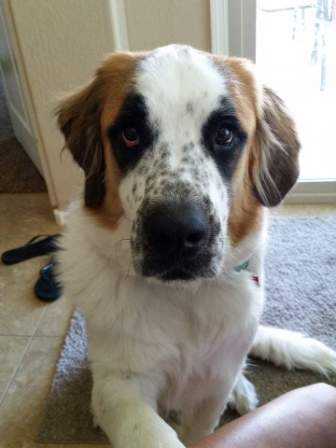 Dexter: My name is Dexter and I am a handsome 10 month old male St. Bernard mix. The previous owners do not know who my dad was. I am a big, but a very gentle dog. I am currently living with two adults and two very small dogs and we all get along great. I love the little dogs and share our bed, all snuggled up at night and play outside in the fenced yard as if we were all the same size. I am a patient soul and sit back and wait until the little ones have been fed and or had treats. Then I know it is my turn to eat and have a treat. I have only been with this temporary home since Christmas, but I have learned so much from my people. I know my commands, walk okay on a leash and am not a barker, except when I hear noises at the front door. I have great house manners and am friendly and social when new people come to the house. I am neutered and my vaccinations will be current prior to my adoption. Because of my size, I do require a secure fenced yard to keep me safe and from wandering away from home. I would do well with other smaller dogs, or a younger friendly dog to live with. Or, I would do well by myself if I was not left alone for hours at a time. I have never been exposed to cats or small children, so cannot tell you how I would behave around them. I will make a great walking, hiking, running companion. I am currently being fostered in Baker City, OR. 3/14/2017