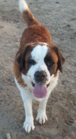 Zeus: is a 14m male Saint Bernard. Zeus is a fun guy! He loves walks, other dogs and kids; everyone he meets is his new best friend. He loves the water but can’t swim. He was formerly an outdoor dog who slept in the garage but he is learning to be a house dog. Zeus has had a lot of hard knocks in his short life; the most recent being left at the vet clinic when he started having seizures. The vet clinic called rescue and we brought him in. We have ran some tests and we are pretty sure his seizures are related to low thyroid. Currently, he is on phenobarbitol to control the seizures and the plan is to wean him off once we get the thyroid medication in his system. Zeus is currently being fostered in Port Orford. 5/7/2017