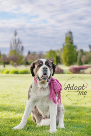 Journey: (Waiting for Foster/Adoption) – 4yr old female, The owner says she is extremely loving and enjoys cuddles more than anything. Would be best in a home without small children. She has very mild hip dysplasia but not on any current medications. She will need work on a leash and is a little fearful of strangers. The owners did not get very much socializing done with Journey – will need to be introduced to new people and new situations carefully because she has led a very sheltered life with the current owners. The owners feel she would do best with a fenced in yard and she can be selective with her dog friends. The owners feel that someone who is used to the giant breed and understands how a Bernard can be very protective of its family would be the right fit.4/21/2017