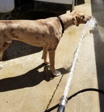 Baxter: is looking for a new family. He is neutered, microchipped, UTD on shots. He is almost 2 yrs young. He loves to play soccer, playing in the sprinkler and wading in his kiddy pool. He loves his people and is very curious. He knows sit, lie down, wears a harness to walk and is learning to heel. He is described as food motivated, goofy, medium energy, house broke. He travels ok in cars and sleeps indoors. He has a big bark, but seems to warm up to new people quickly. He has not been around any children and needs socialization with dogs and cats. Do you have room in your heart and your home for this big guy?3/19/2017