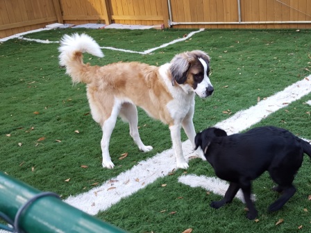 Beauty: is a high energy alpha female Saint. The first comment when people see her is how pretty she is and what a beautiful wavy coat she has. Beauty knows her commands, can self entertain, loves walks, attention, body rubs and is house-trained.