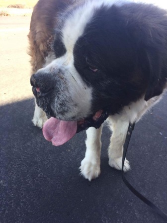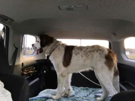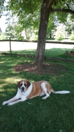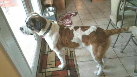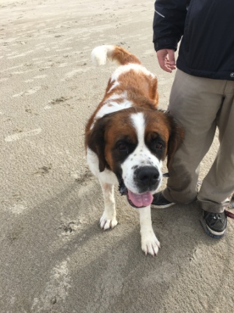 Hammie: is a handsome, friendly 4 year old male short haired St. Bernard rescued from the local shelter just two days before Christmas. Hammie is a quiet, sweet boy who gets along with other dogs and enjoys people. He loves to go for rides.2/5/2017