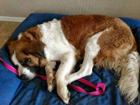 Duchess: is a loving, beautiful three year old St, Bernard who needs to be an only dog because she wants all the attention! Duchess enjoys walks and play time with her family. 4/23/2018