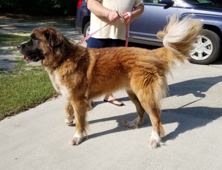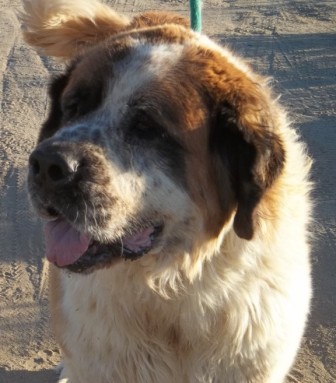 Beauty: is a high energy alpha female Saint. The first comment when people see her is how pretty she is and what a beautiful wavy coat she has. Beauty knows her commands, can self entertain, loves walks, attention, body rubs and is house-trained. Beauty is spayed, micro chipped and current on her vaccines. She weighs 120 and has been working on building up her bones since she had a broken elbow when she was rescued. Most of the time you can’t even notice a slight limp which doesn’t slow her down. Beauty loves all people, but is choosy about her canine companions that must be submissive to her and enjoy playing hard. She needs a family with prior experience with setting rules with big dogs. Beauty is working on her socialization skills and would love to meet you.1/8/2018