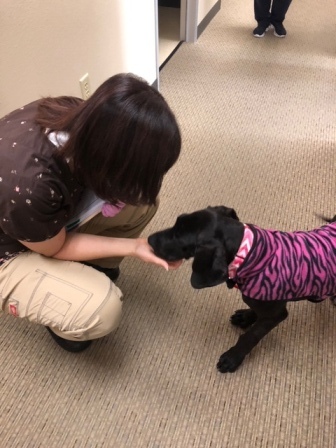 * She gets nervous when men wear hats * She gets a little nervous and car sick on long car rides * She is awesome with kids big and small * She has done well with kittens and won’t bother indoor cats, but if they run, she may chase to play * Minnie LOVES stuffed and soft toys