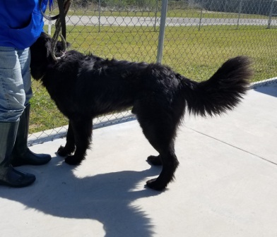 Sadie: is a 2yr old female long haired Saint. She is a smaller, athletic Saint, about the size of a Golden Retriever. Sadie came to us from a shelter where she was relinquished by her owner. She had been living in horrible conditions in a muddy backyard with no training and little interaction with others. Sadie is underweight; when she arrived she weighed 74lbs. She is eating like a champ and starting to gain weight and is cleaned up and looks much better than when she first came in. Sadie’s target weight is at least 90lbs. Sadie is doing great transitioning to an indoor dog. She is good in the house and has not chewed on things she is not supposed to. She gets along great with the two dogs she is living with and loves to play with them. Occasionally, she chases the household cats but stops in her tracks with a firm “No Cat” command. She is housebroken and is learning manners and how to pay attention. She needs an owner who can set limits with her and stand by then. Sadie needs more practice learning to walk on leash and would benefit from an obedience class with her new owner. Her public manners need work because she gets so excited to be in new places. She is friendly with everyone she meets and will give kisses, but she definitely needs to rein in her exuberance. She seems to love car rides. She can be fearful of loud noises. She is good about having her ears, feet, etc handled. Her former owner stated she has lived with children and is very tolerant and playful with them. Sadie does “mouth” your hand when she gets excited and wants attention, so that will require a little training. She is currently learning that she does not get attention until she calms down. She would do best in a household with other dogs to keep her company and with an owner who has plenty of time to spend with her and love to give to her. Sadie is UTD on shots, microchipped, HW negative and is scheduled to be spayed in the next week. 1/19/2018