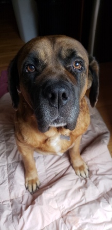 Tanner: is a 9yr old neutered male. He is a big boy at 185lbs. Tanner spent most of his life as an outdoor dog and is loving living in the house with his people. Tanner loves attention, especially from the ladies. He has the perfect Saintly temperament and is good with everyone (except chickens). Tanner has a few health issues that need to managed due to his age and weight and he will be adopted by his foster family, where he is loved by all and can offer love, comfort, quiet presence and companionship to the incoming foster dogs. 2/12/2019