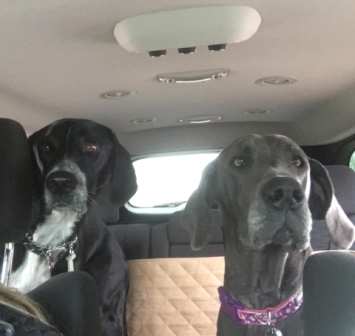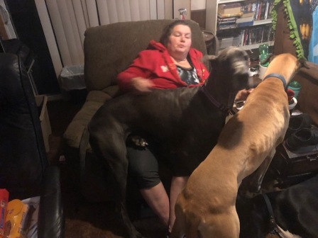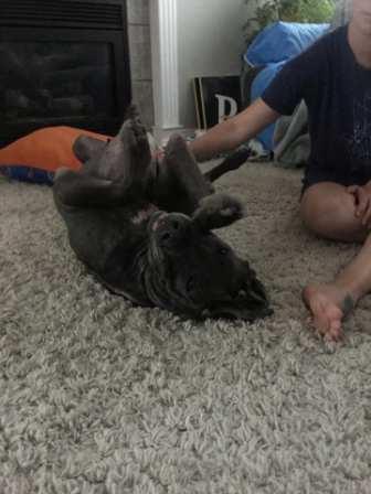 Scarlett:This is Scarlett, Scarlett is a 4 to 5 year old petite Great Dane weighing in at about 97 lbs. She is a big goof ball with medium to med/high energy. Loves to play. Loves her toys. Loves her humans. Loves other dogs but doesn’t realize that not ALL dogs don’t want to play with her. She is very treat and pets motivated.10/8/2019