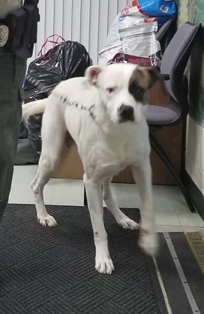 Sugar: is a 6 year old spayed female Saint. She is a big, sweet girl. Sugar has lived in a pen most of her life. She is strong and needs training. Sugar is good with other dogs but can be dominant with other females. She has not been around cats and would not be a fit with smaller animals. She is good with kids. Sugar is h/w neg, microchipped, spayed and utd on shots. 2/12/2019