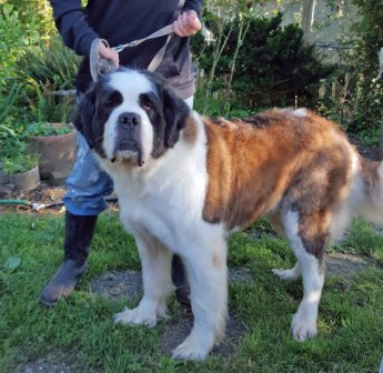 Lucky: Introducing Lucky! Talk about an irresistible face! Lucky is a 2 year old neutered Saint looking for a new home through no fault of his own. Lucky loves people of all sizes, has done well around kids. Lucky still needs some guidance when meeting other dogs but does well with others for the most part. He would do best in a home with another outgoing Saint or breed that is close to his size. Lucky has never met a cat. He is housebroken, rides well in the car, has had professional obedience training, loves walks and toys. Microchipped, utd on vaccines and has been well cared for and very loved. Currently Lucky is being fostered in Bothell, WA. Fully fenced yard with plenty of room to stretch out and play is required. 6/14/2019